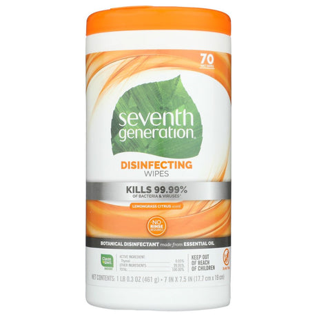 SEVENTH GENERATION: Disinfecting Wipes Lemongrass Citrus Scent, 70 Wipes