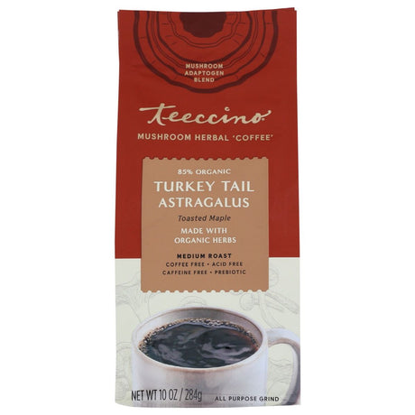TEECCINO: Turkey Tail Astragalus Toasted Maple Mushroom Herbal Coffee, 10 oz